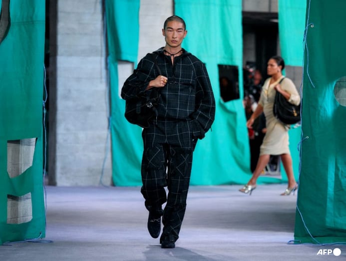 Burberry’s signature check appeared frequently, across bags, shirts and trousers, although they weren’t as vividly coloured as seasons past. “What we’ve endeavoured to do is to explore the check and move it into new colours, new textures, and really treat it as the most precious element of the house, in a way that the trenchcoat is,” Lee said — a staple item that the brand seems to be doubling down on. “A coat is something that I feel people invest in,” he noted.