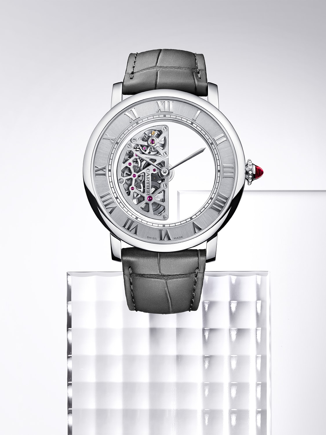 The hardest part was in figuring out a way to keep the hands from moving along with the calibre/rotor, since both are centrally mounted, but Cartier drew inspiration from the automotive industry to develop a special differential for it. It did however, take eight years and a team of 10 to finish this watch, and three watchmakers just for movement assembly alone. The Masse Mysterieuse comes in at a sizeable 43.5mm by 12.6mm, and is a limited edition of 30 pieces in platinum with gem-set options.