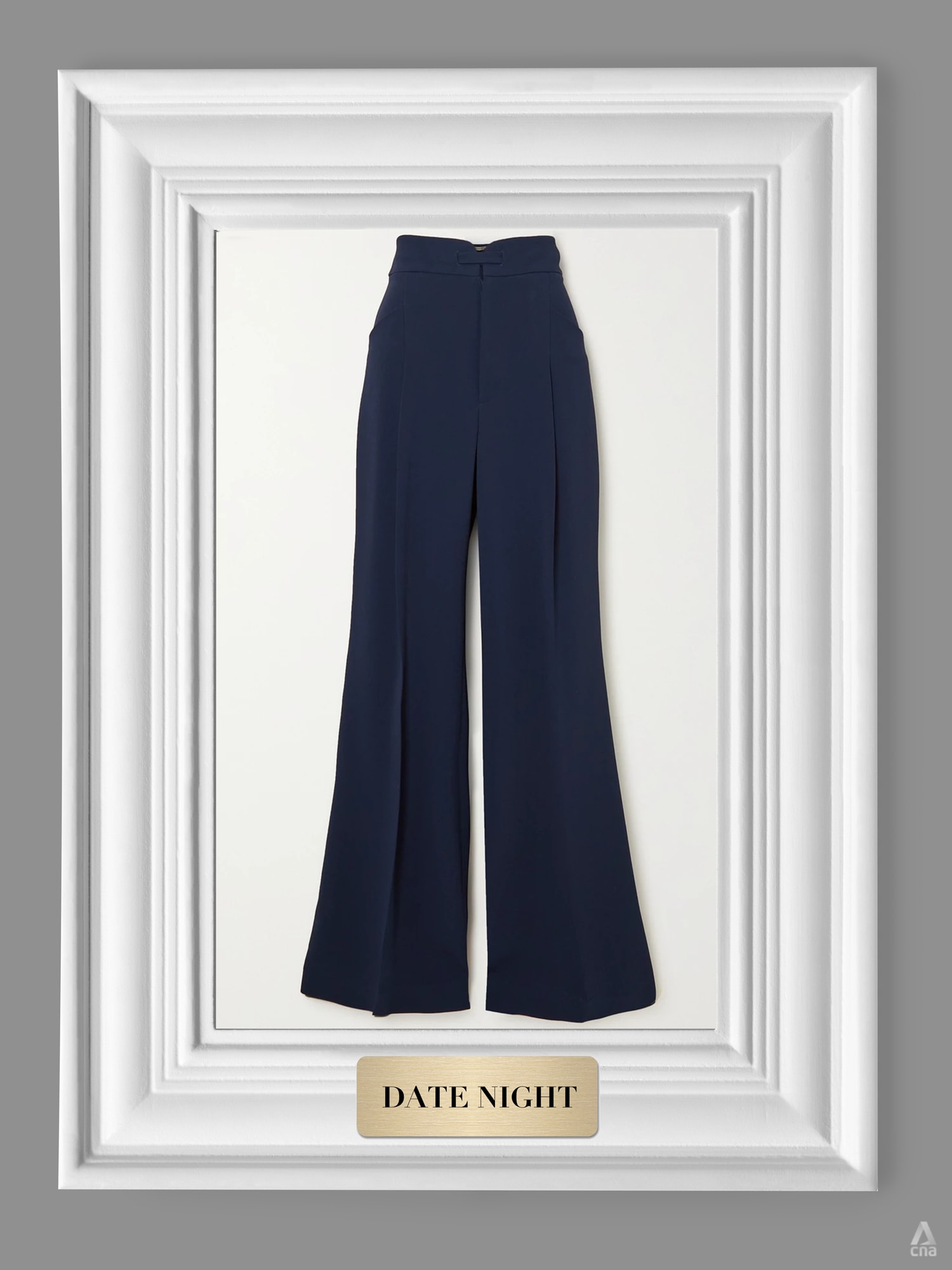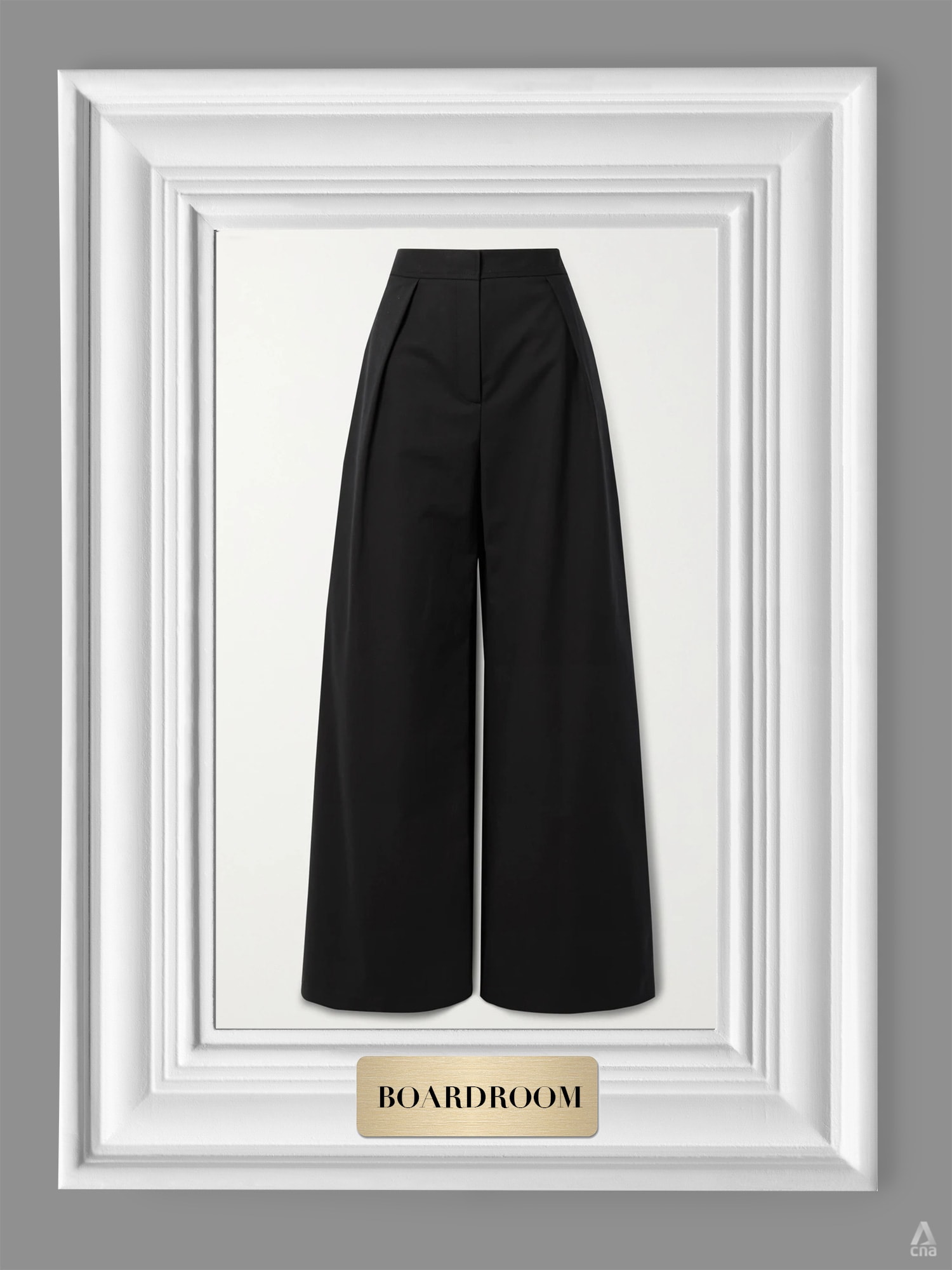 Keep the lines sharp and the colours muted when wearing baggy trousers to the Monday management meeting. This pair of pleated crepe wide-legged pants from Alexander McQueen checks the boxes if you are hoping to command attention. Once an apprentice on Savile Row, the designer’s affinity for clean lines and precise cuts still influences the label's designs today. Tailored from black crepe, emphasise the flattering high-rise and pleated front by tucking in your shirt.