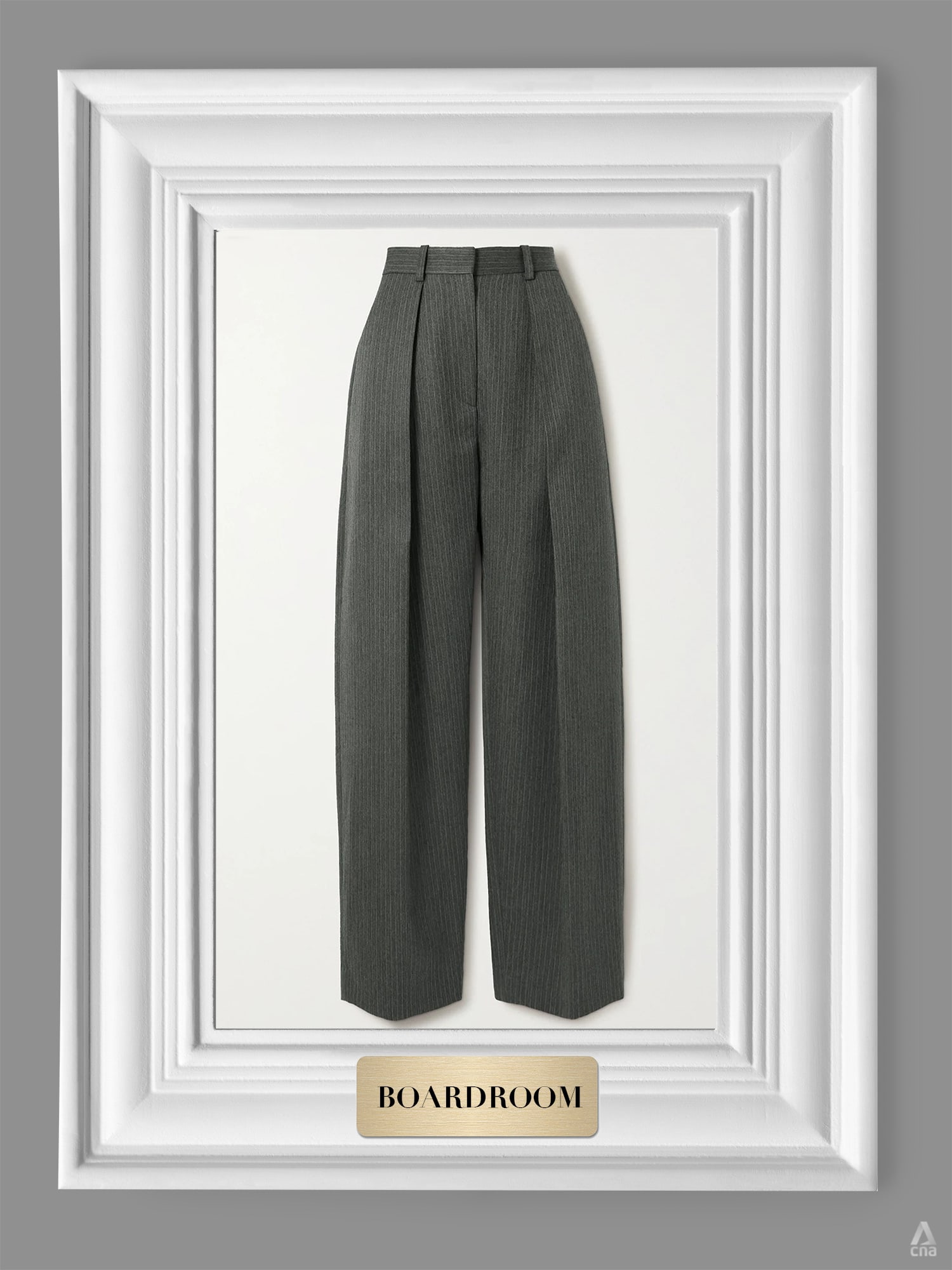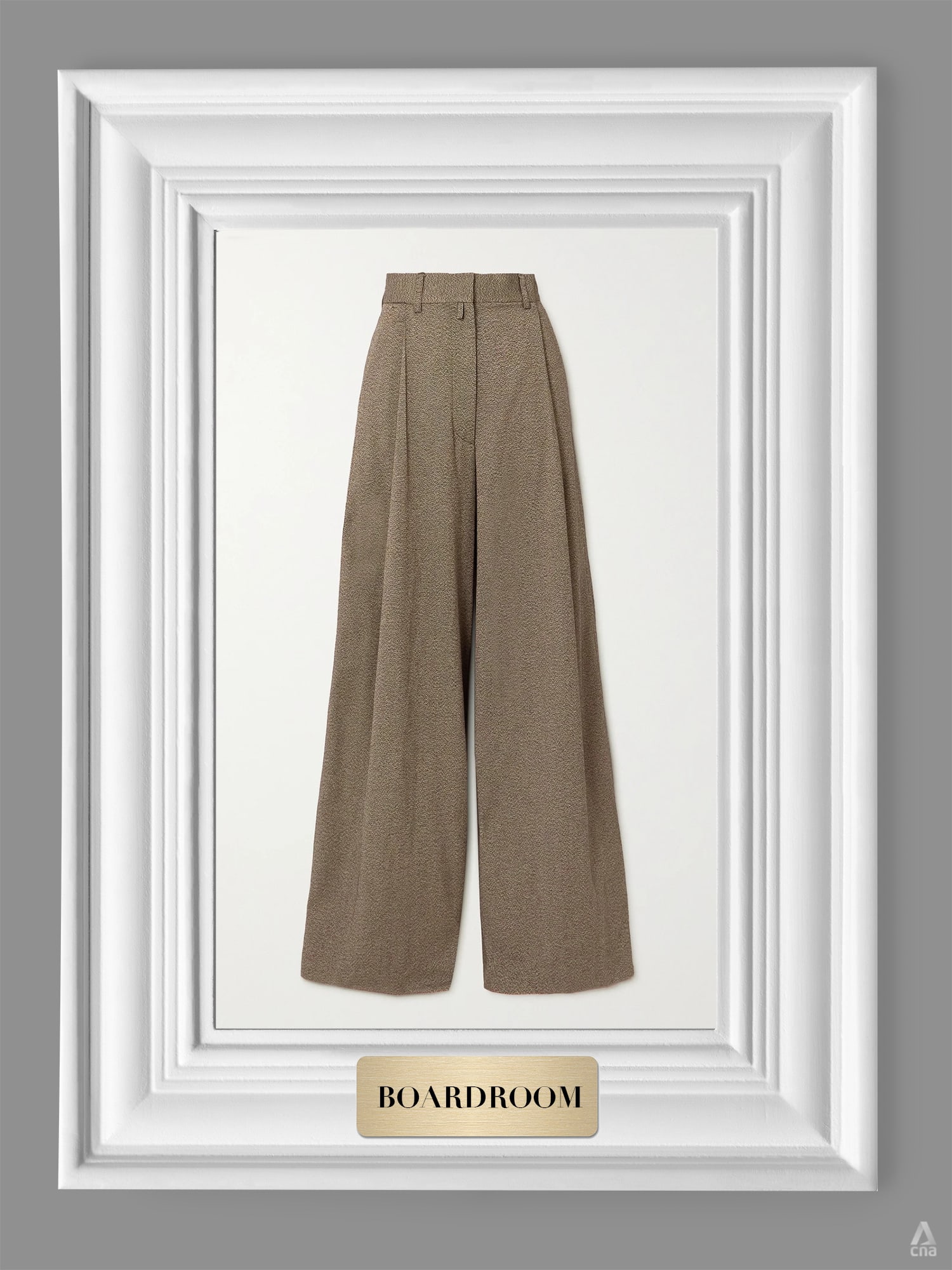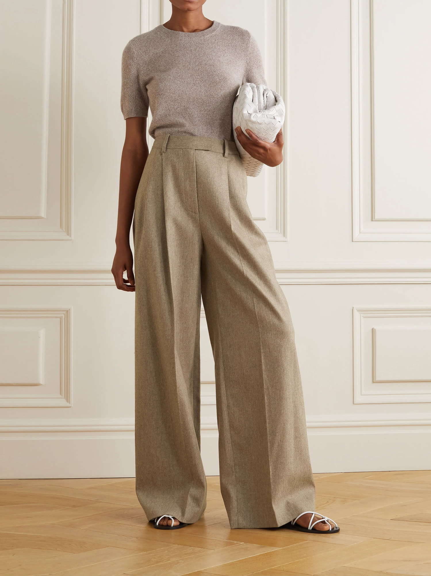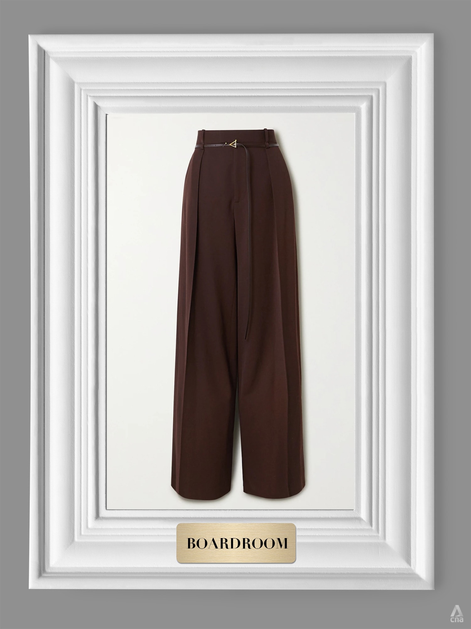For a style that’s less strict and more forgiving, this pair of wide-legged pants from Bottega Veneta is beautifully constructed from brown wool-twill. Fluid in silhouette, it has a slim leather belt and sharp pleats that add just the right amount of structure without compromising femininity.
