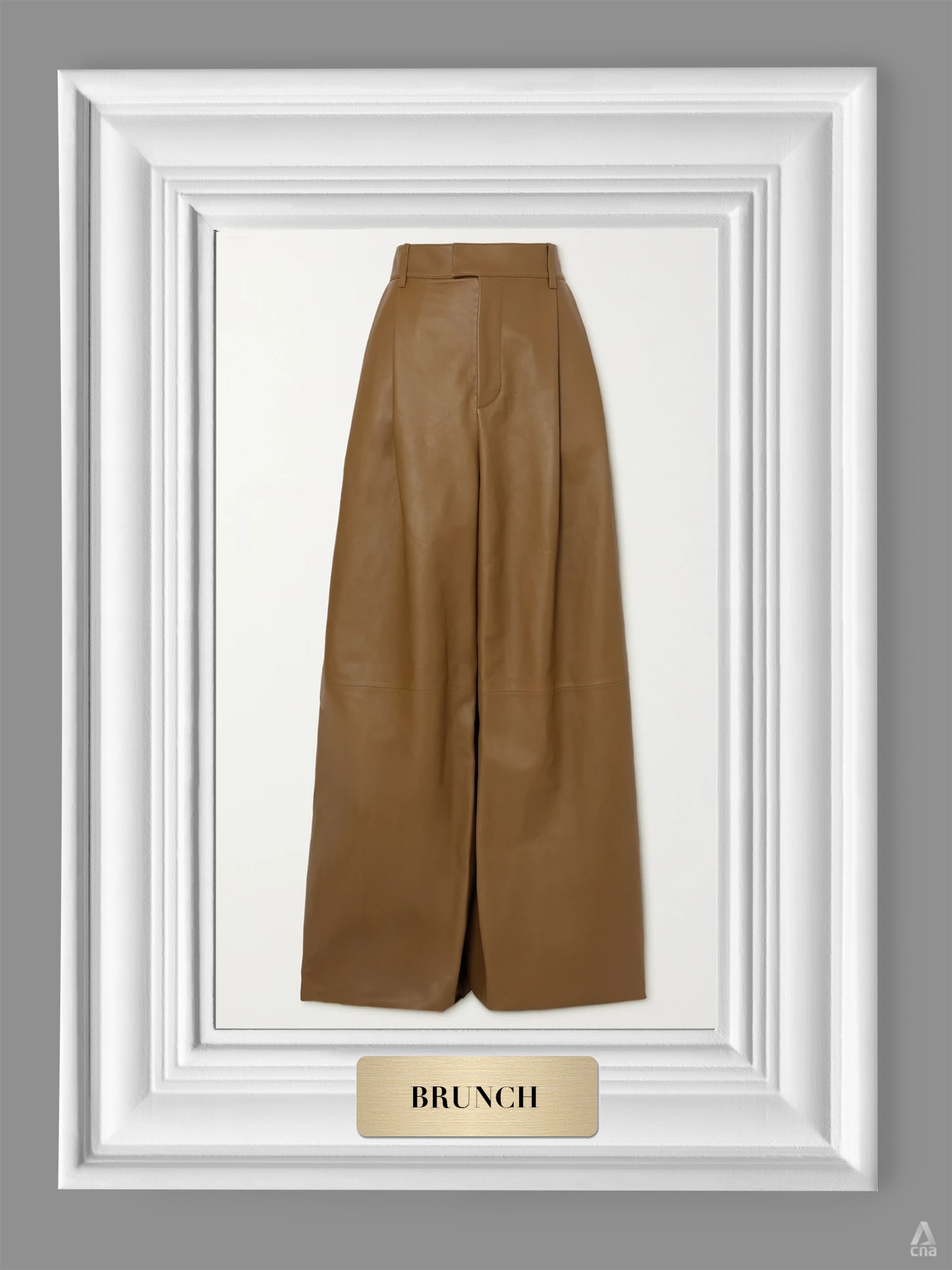 If you prefer a look that is less severe, this pair from Dries Van Noten in a hazelnut tone manages to be both slouchy and tailored at the same time, thanks to the double pleats that accentuate the wide legs. Pair this with a matching blazer for a formal air, or simply slip on a soft white blouse.