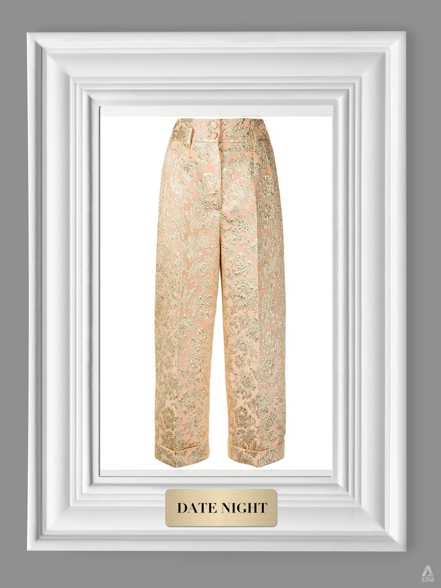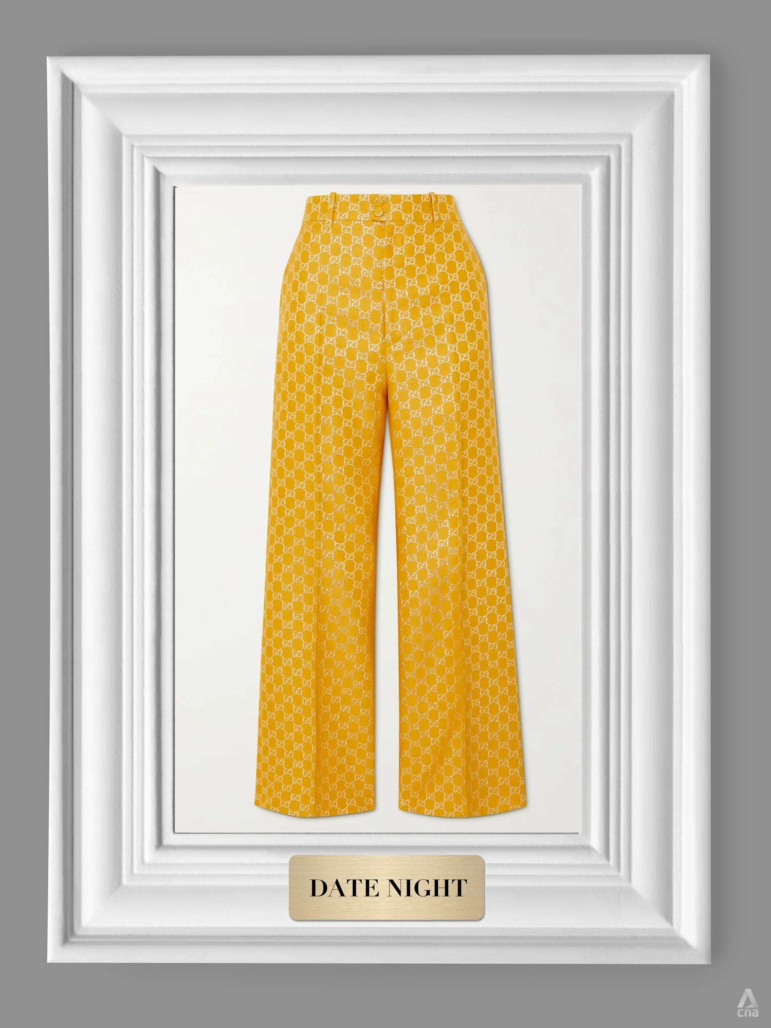 Dressing up for an evening out with the beau has even more significance now, given that we haven’t been able to do so for so long. So pull out all the stops with this pastel pink pair of cropped trousers from Dolce & Gabbana. Decorated with a gold-tone jacquard pattern, these trousers will make it an evening to remember. So too will this high-octane canary yellow pair from Gucci, which is delicately cut from wool blended with silk and jacquard, and woven with a discreet metallic silver GG motif. Punch it up with a black see-through blouse for added glamour.