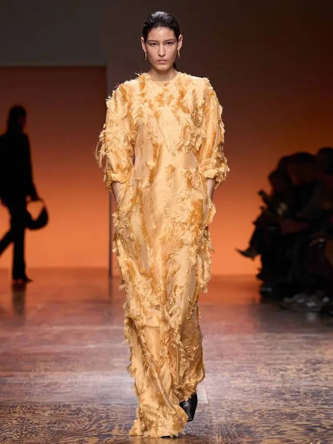 Maxi-length skirts with jagged hems; asymmetrical tailoring; deconstructed collars, sleeves and closings; geometric panels and flaps that swoop out of nowhere, breaking preconceived forms – the artistic Cubist motifs of the 1910s are making a powerful comeback this season. Flowing coats and maxi dresses at Bottega Veneta are being reimagined with modern cuts, offering different perspectives on traditional garments; Designers such as Jonathan Anderson at Loewe are playing with overlapping layers and diagonal slits, merging a kind of cerebral elegance with sensuality, as a re-examination of classic fashion shapes seen with 21st Century eyes.