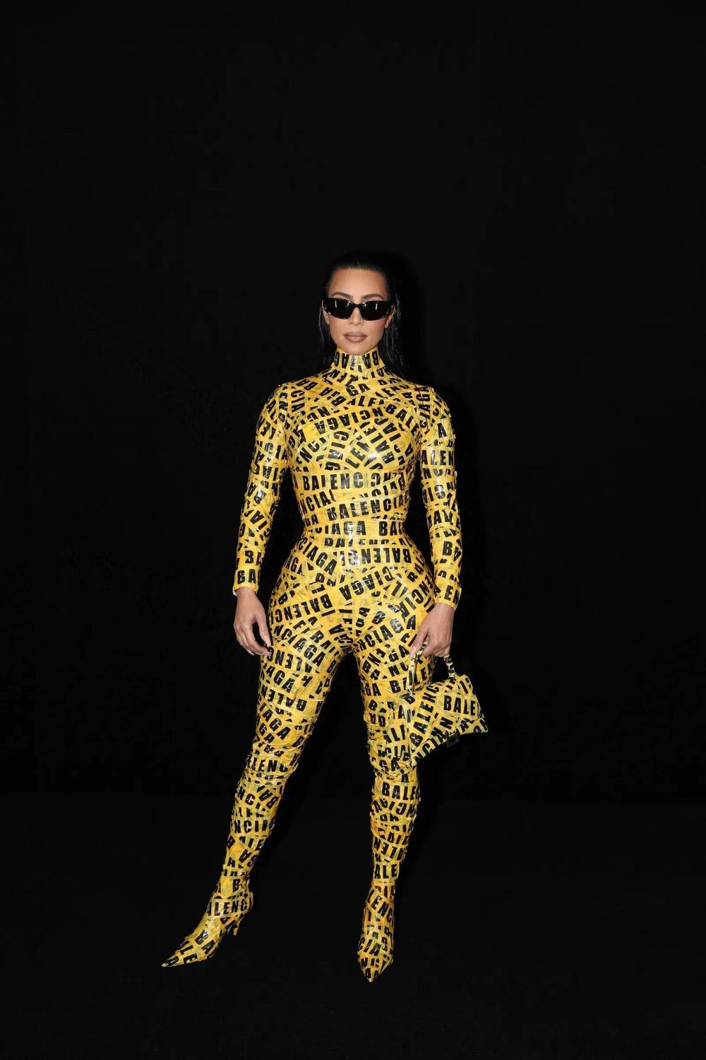 In October, Kardashian was mummified in Balenciaga-logo duct tape for the Balenciaga fall 2022 show. She was bound from chin to toe, leaving only her hands free to claw at the brand’s Hourglass bag (taped to match). She needed help just to walk, and she climbed stairs sideways, at a glacial pace. The plastic tape crackled and emitted gleeful squeaks with every painful step; she couldn’t go to the ladies, she couldn’t bend, or reach out for an eclair. All this for clicks. This is clickbait fashion.