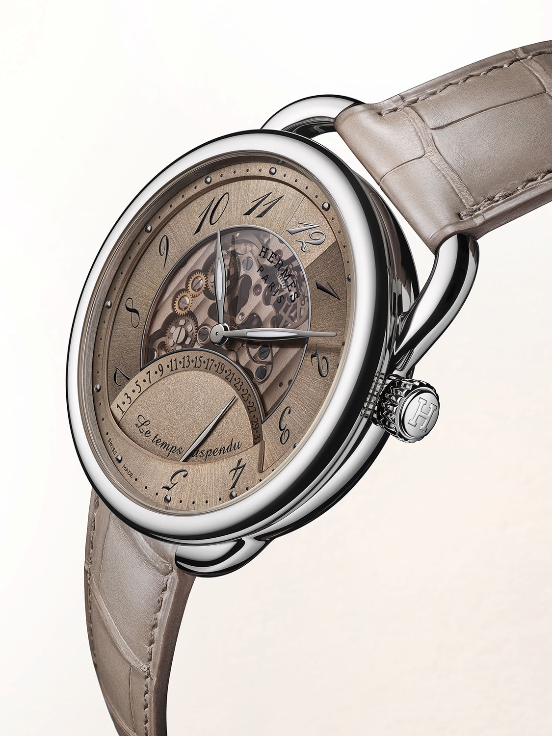 The result was the Arceau Le Temps Suspendu (Time Suspended in French). Unveiled in 2011, it even won the Men’s Watch Prize at the Grand Prix d’Horlogerie de Geneve (GPHG), the watchmaking world’s equivalent of the Oscars. The watch introduced what Delhotal described as “non-conventional complications”, inaugurating a new chapter for Hermes.