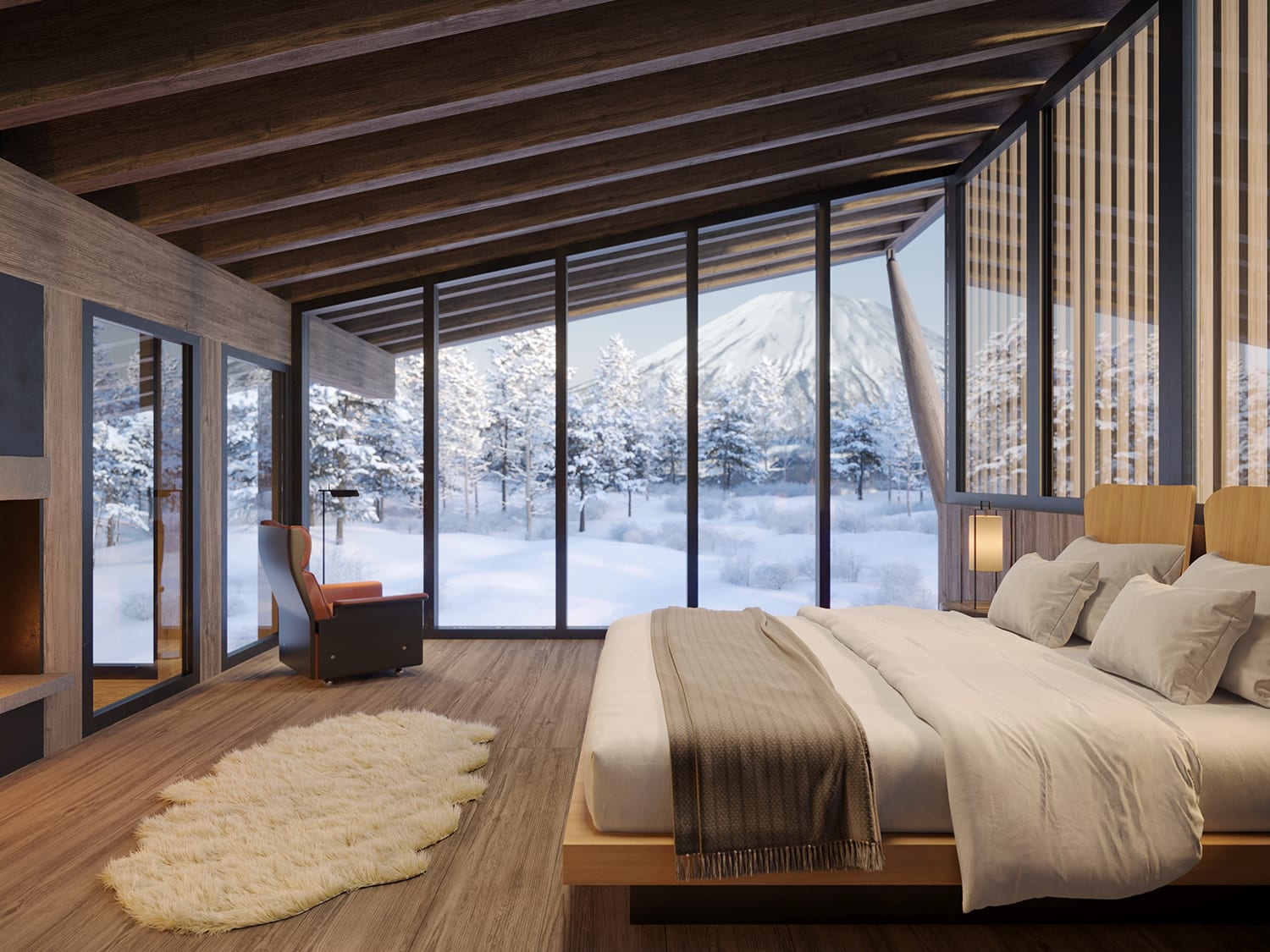 The hotel and property boom in Niseko shows no signs of abating, and new luxury residential development Odin Hills is setting itself apart by offering buyers a choice from four designs by Pritzker-prize-winning architect Shigeru Ban. These private alpine chalets are made to adapt to the natural topography of the area, feature customisable floor plans and have multifunctional interiors. Spanning 295 sqm to 615 sqm, each villa enjoys views of Mount Yotei and amenities including a designer kitchen, a wine cellar, a fireplace, a ski room and dry room, owner storage, and a hinoki wood onsen-style family bath.
