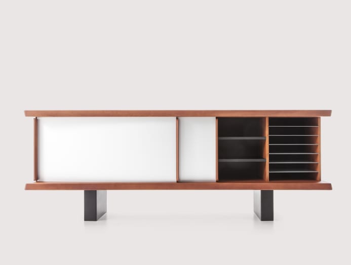 Originally produced in only one size and two heights with black lacquer finish, Italian furniture brand Cassina offers a new version that Perriand produced in 1938 for the Parisian editor Steph Simon. The latter has more generous dimensions and a choice of solid mahogany wood, with natural or black anodised aluminium doors. Available at W Atelier.