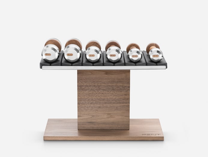 Meanwhile, Colmia is a set of luxury dumbbells from Pent made from stainless steel and natural woods. From S$5,970, customers can customise their sets by selecting their preferred type and shade of wood. They can also engrave their initials on the wooden stand, because, why not?