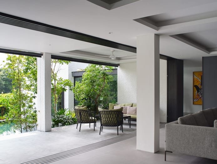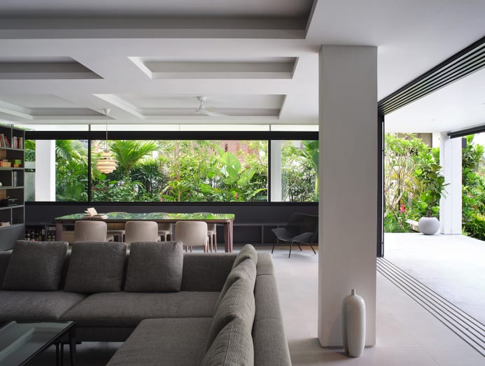 And when the children are back in Singapore, it is nice to be able to hear and see where they are in the home due to its well-connected spaces. In those times, the entire family gravitates towards the living room. “It’s big enough for everyone to have a corner but still easy to chat,” said the homeowner.