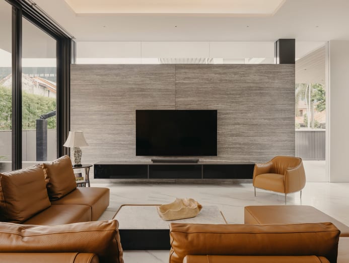 The couple share that the house meets all their needs. “Since moving in, we have found this is truly a home built to cater to our habits and lifestyles,” said the homeowner. The couple enjoy having friends over for food-and-drinks sessions, and the open-concept kitchen island facilitates that. “The generous dining space allows us to host dinner parties with a view of the swimming pool,” added the homeowner on the linked spaces.