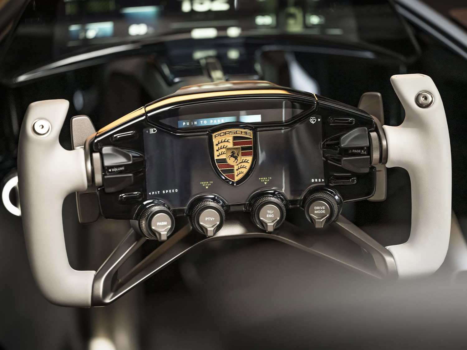 Inside the driver-focused cockpit, you have CFRP seat shells integrated in the monocoque and more motorsport parallels in the form of an open-top steering wheel with mode switches and shift paddles.