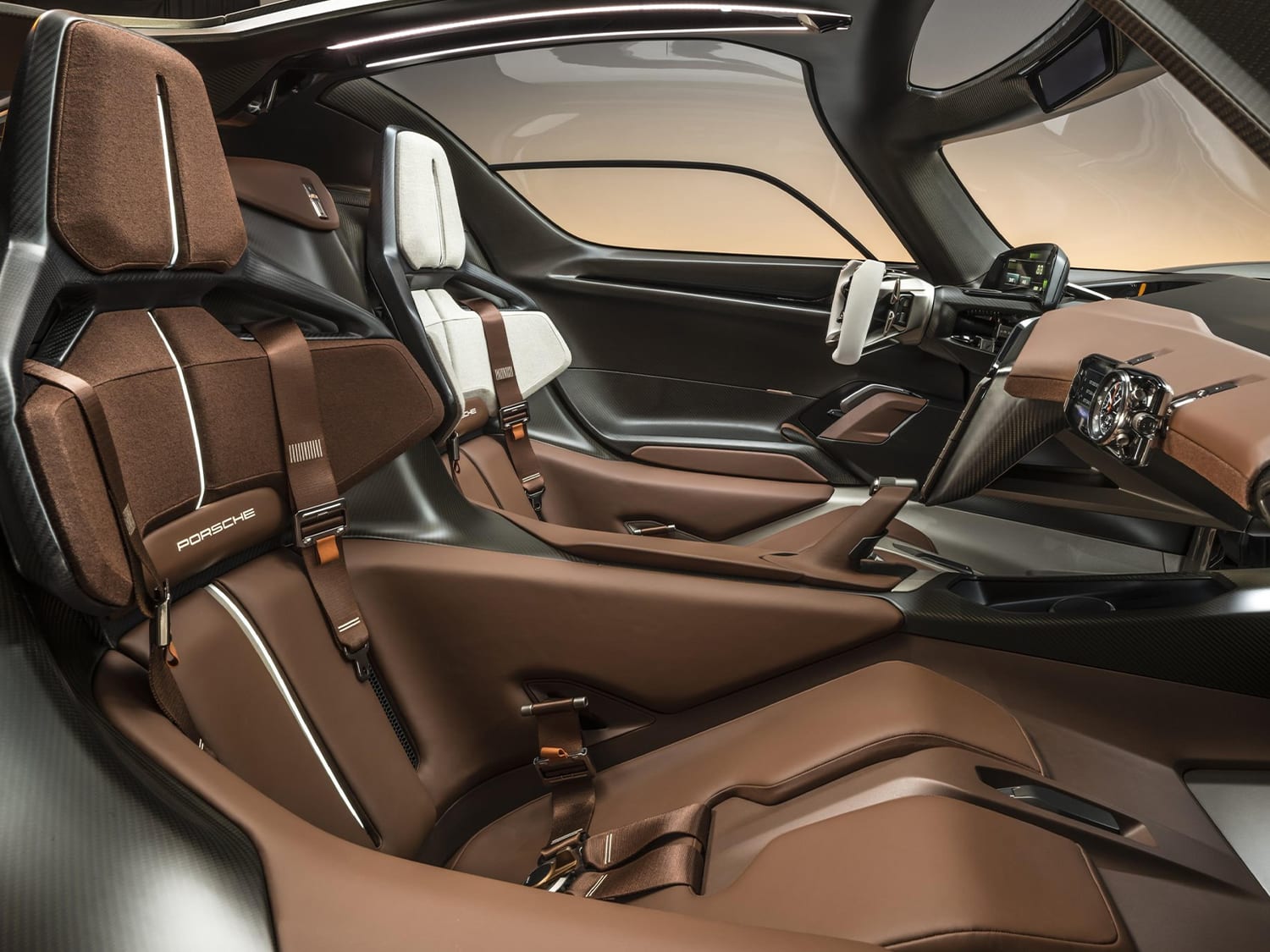 Another highlight worth mentioning is the bespoke stopwatch module that can be attached to the instrument panel on the passenger side. Created by Porsche Design specifically for the Mission X, the clocks feature both analogue and digital displays designed for both racetrack and rally use, and can display the lap times or vital data of the driver, among other information.