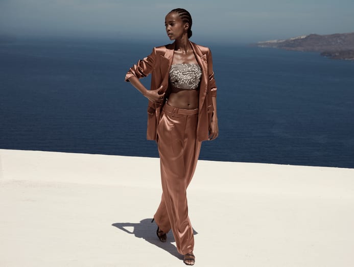 A power suit always looks chic but to update the classic two-piece, pick a set featuring trousers with a more relaxed, flowing cut for a contemporary louche vibe. To really make a statement with your outfit, choose one made with a luxurious fabric such as lustrous, fluid satin or party-ready sequins.
