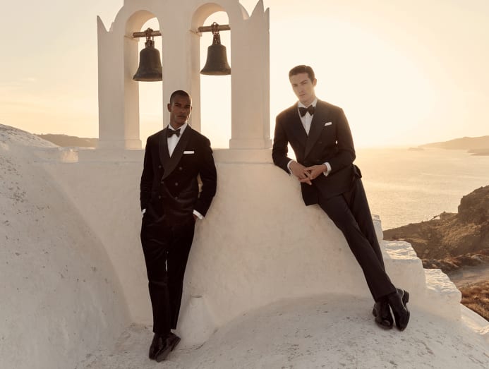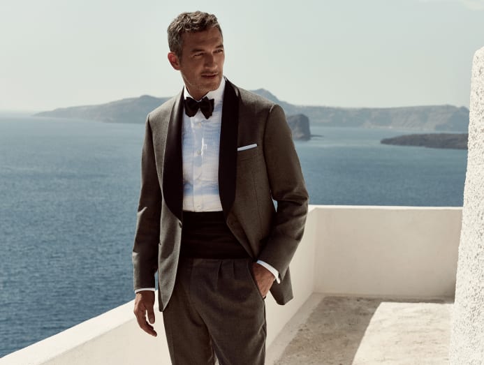 When it comes to formal wear for men, it is not just about wearing a suit in a solid colour. Instead, take the opportunity to experiment with cuts and textiles to show off your personality. For example, Brunello Cucinelli offers a selection of patterns ranging from classic chalk stripes to new interpretations of tweed, houndstooth and Prince of Wales check for more contemporary leanings. Accessories with pops of colour, such as a bowtie, pocket square or even socks are easy ways to infuse a touch of whimsy to what you are wearing.