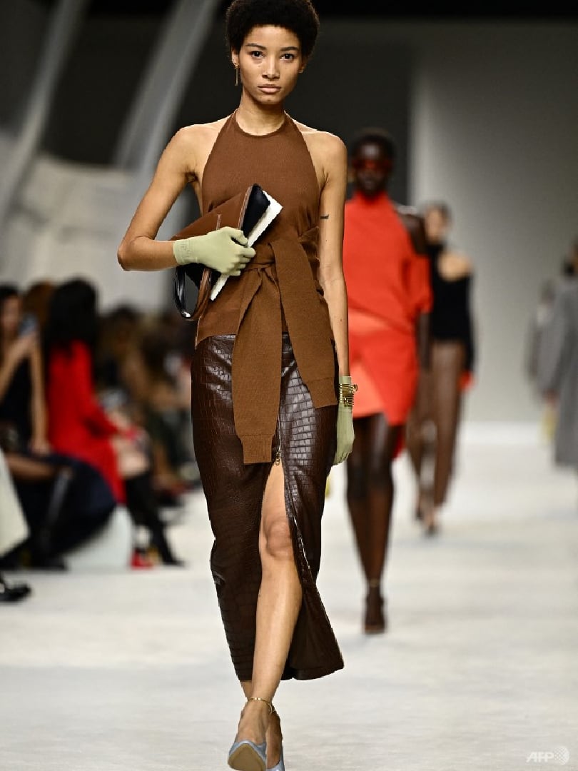 Inspired by Fendi’s 1999 spring collection designed by Karl Lagerfeld, it was the restrained palette of colour blocking, from caramel to Aperol orange to Fendi yellow, muted blues and steely greys that endowed each outfit with sophistication and grace.