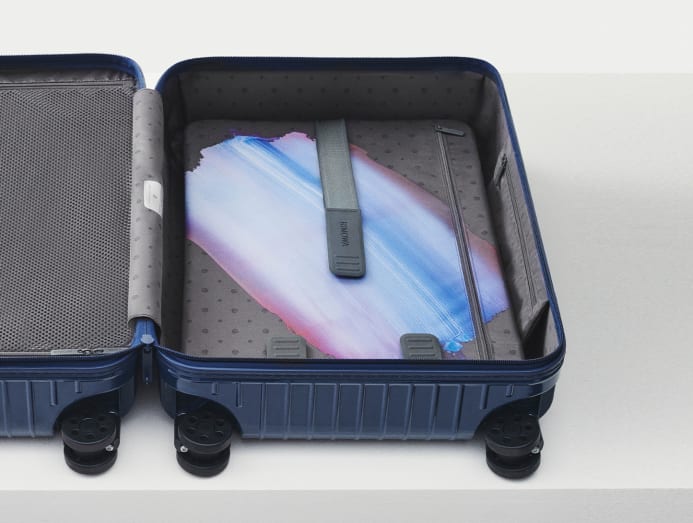 Another unique feature in the design of the suitcase is a blue-tinted brushstroke artwork printed on the inside on the Rimowa flex divider. “It’s a little surprise for the owner. It’s fun and makes it a bit more special. I’ve never seen a suitcase where you open it up and there’s some sort of artwork inside,” quipped Mann.