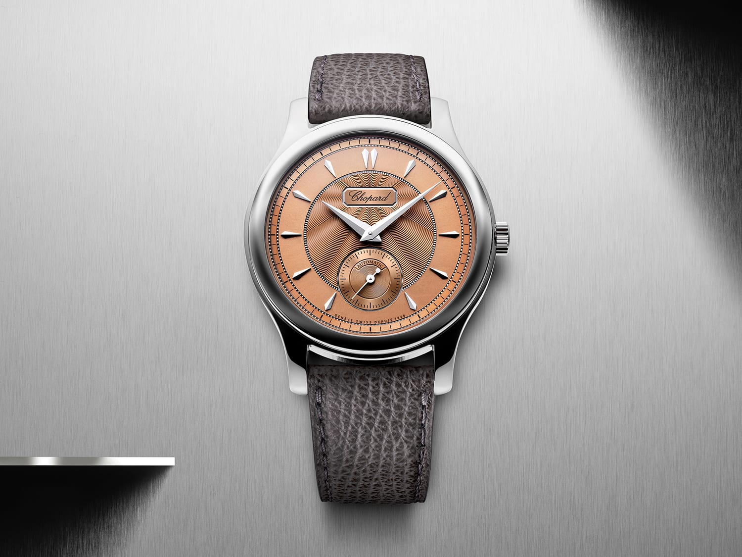 For a faultless time-only dress watch, you could do no better than Chopard’s re-edition of its original LUC 1860 from 1997. Still present is the 36.5mm case size with a gold guilloche dial. What’s visibly different is the absence of the date function, which has led to a cleaner, more elegant dial. And that’s not where all the differences end. Instead of a white gold case, Chopard has turned to its proprietary Lucent Steel, which comprises 80 per cent recycled elements while offering properties comparable with surgical steel. As for the dial, it’s adorned with a hand-guilloche centre, paired with a snailed small seconds counter that’s driven by the automatic L.U.C 96.40-L movement.