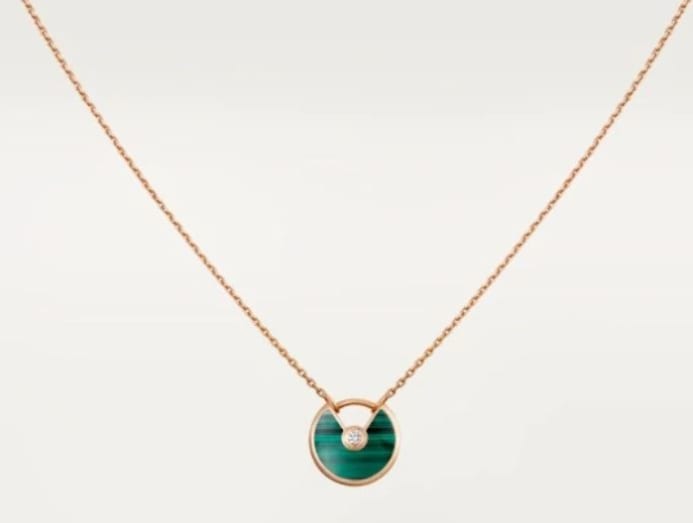 Cartier’s Amulette de Cartier is a collection of precious lucky charms. This necklace, featuring a green malachite and diamond pendant, will be your very own magical talisman.