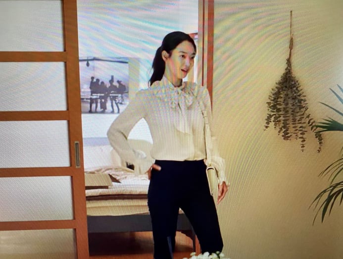 White on white? It's a yes from us. Hye-jin wears a white Saint Laurent pleated collar blouse in episode three, paired with Le Carre handbag in off-white. Tres chic!