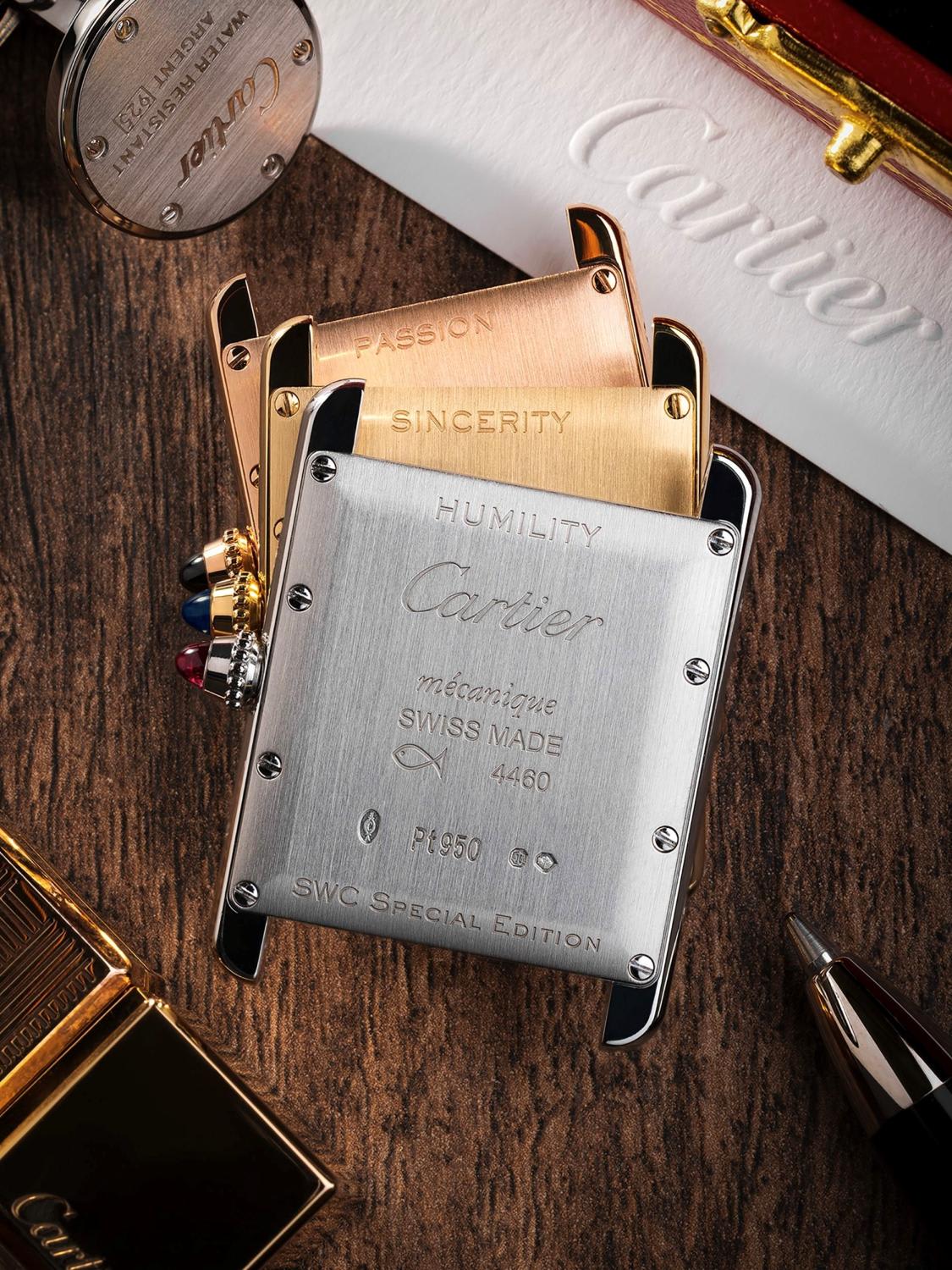 The collection draws inspiration from six iconic Cartier shapes – the Cloche, Tonneau, Santos Dumont, Tank Asymetrique, Tank Cintree and Tank Louis Cartier, each representing six years of SWC.