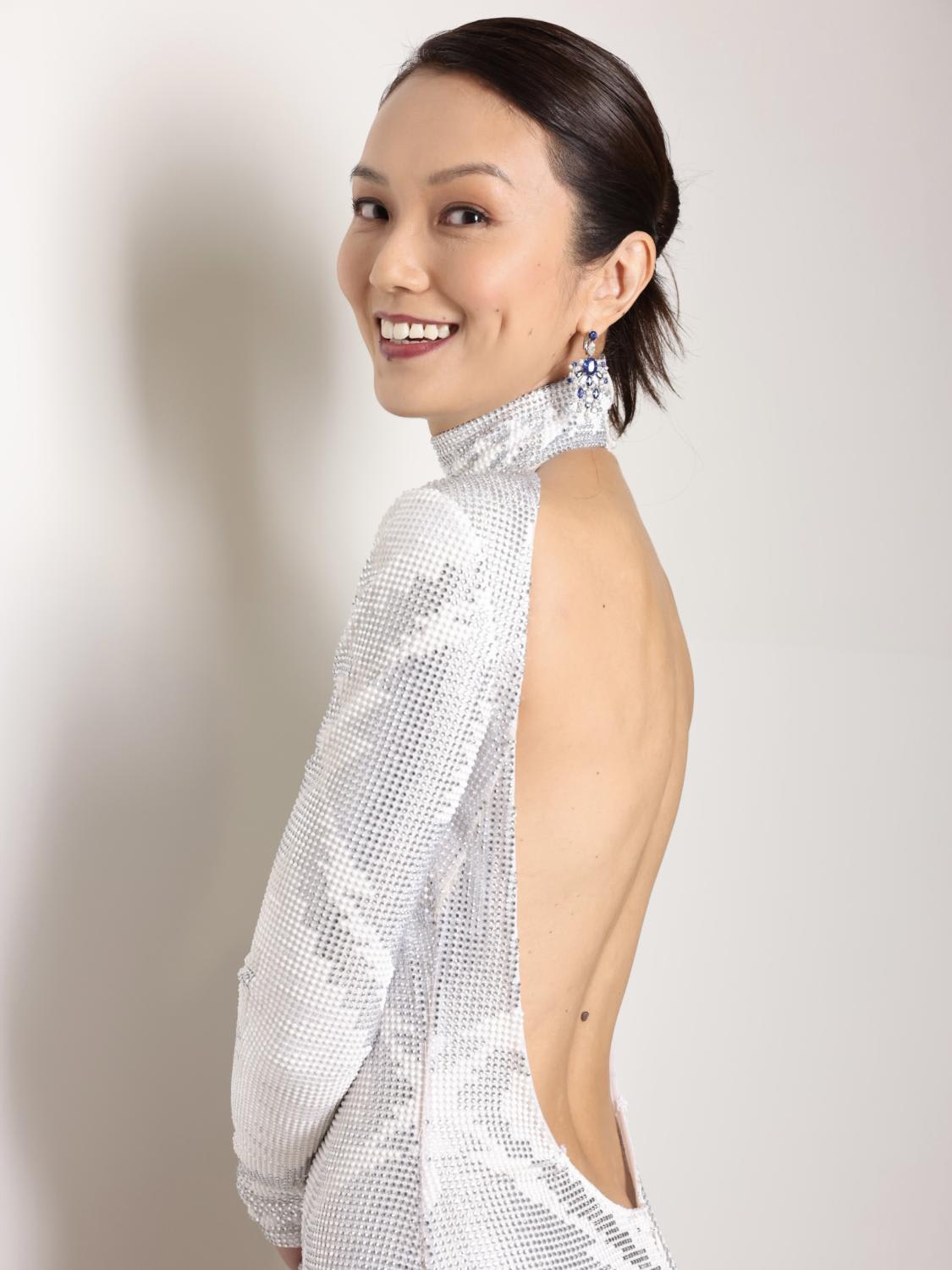 Joanne Peh was resplendent in a backless gown, which she accessorised with a pair of Piaget Treasures Earrings set with two pear-shaped diamonds, worth S$75,000.
