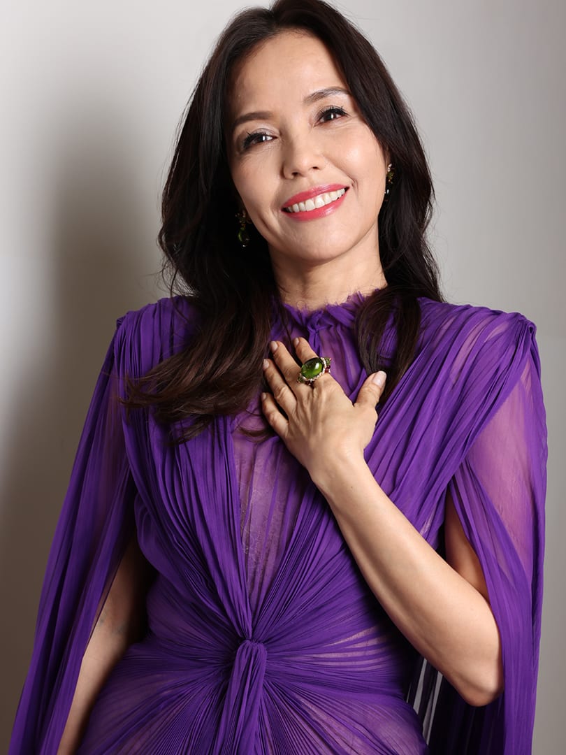 Carrie Wong proved that less is more with a simple black gown this year. For jewellery, the actress stacked together the Tiffany Knot Double Row Necklace in rose gold, and the Tiffany Victoria mixed cluster necklace in platinum with diamonds.