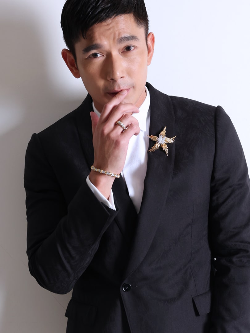 Ng made an outfit change for the awards ceremony, this time opting for a more traditional black suit. He finished off the look with accessories from Tiffany & Co, including the Schlumberger Paris Flames Brooch.