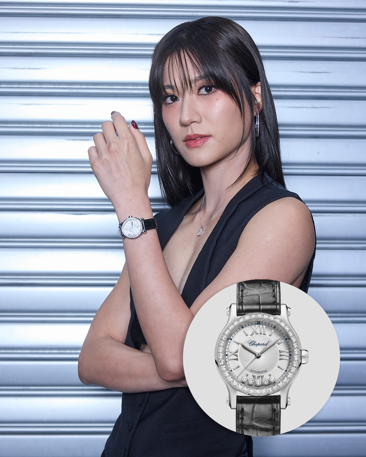 Teo embodied power dressing with the Chopard Happy Sport adding a touch of glamour to the overall look.