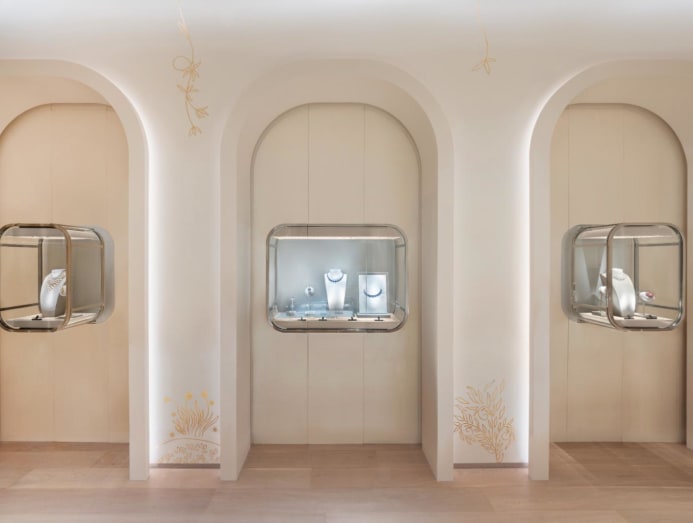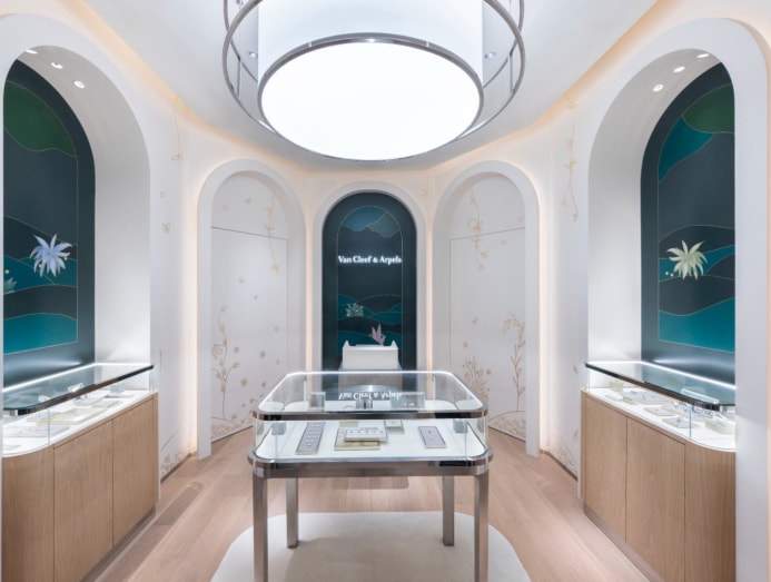 Visitors first step into an intimate retail space, where emblematic and timeless collections of the maison, such as the Alhambra and Perlee creations, are on display.