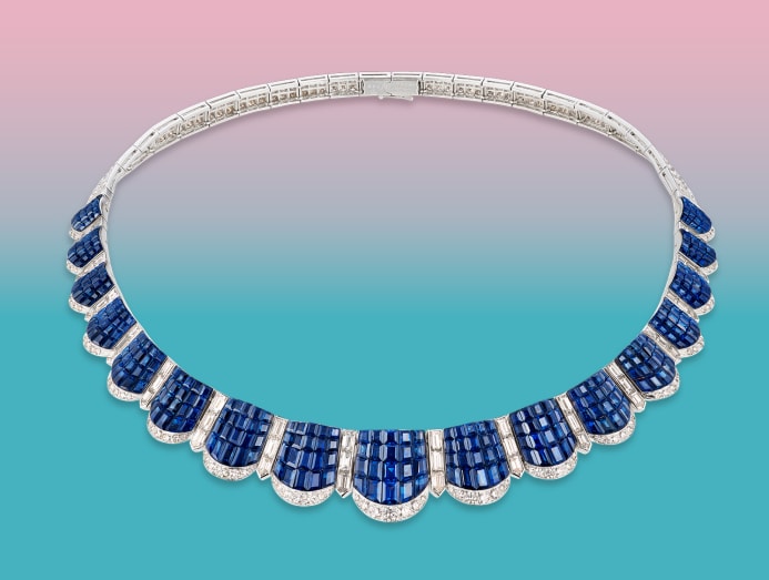 Another must-see is the intriguing Ribbon necklace from 1940, which draws inspiration from the world of couture, set with rubies and diamonds.