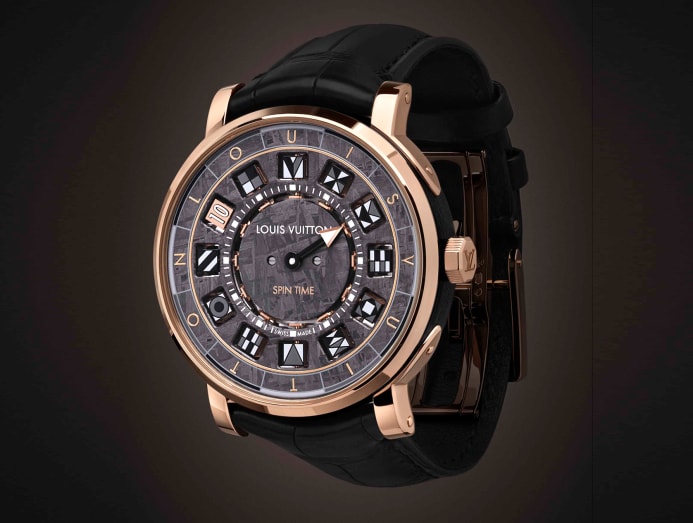The Louis Vuitton Escale Spin Time Meteorite watch, with a titanium case, rose gold bezel, a nice mechanism, and a face made out of real meteorite. You’re wearing billions of years on your wrist!