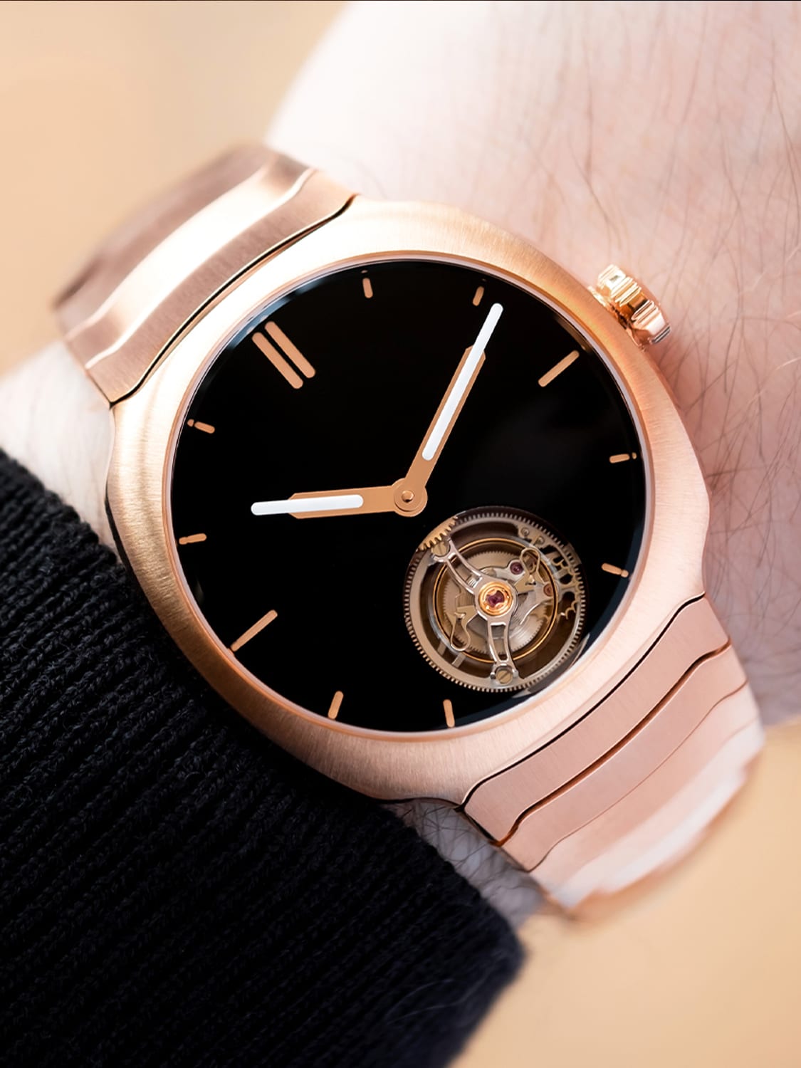 Edouard: The Streamliner Vantablack Rose Gold Tourbillon is a watch that I was surprised I love a lot. I am not someone who would wear a rose gold watch, but last year, it was very difficult to take it off my wrist. There are a few models that we feel are perfect. There are many others that we might change a little bit over the years. But for this watch, it feels like the black dress of Chanel. It might never change. There’s not much I would do differently.