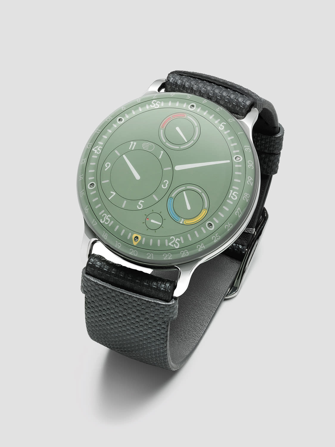 That vision crystallised in watches that have no crowns (anymore) or traditional hands, with all indications displayed using rotating discs that lie satisfyingly flat on a single plane. His latest release, the Type 1 Round M, is a colourful variation of the Type 1 Round launched earlier in 2023 that perfectly exemplifies the brand’s focus on legibility, function, and pleasing aesthetics.