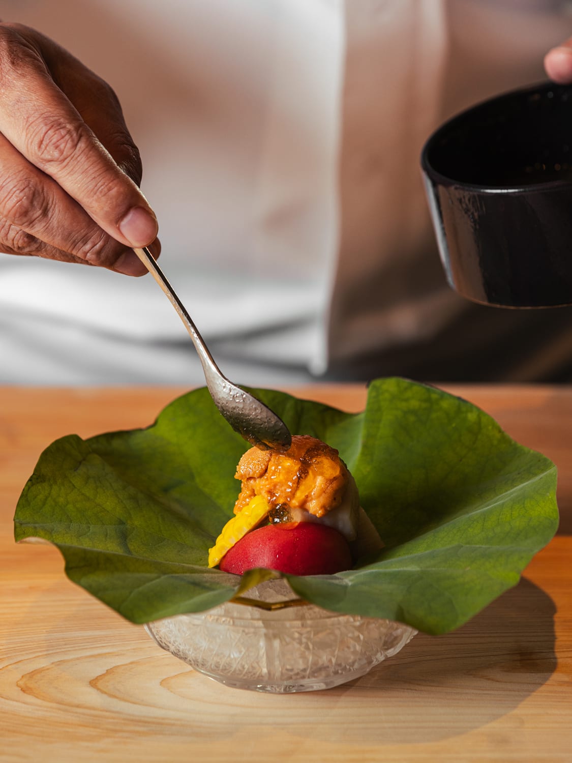These ingredients are gently cooked in water from Mount Fuji, near Chef Yuichiro’s birthplace. “Using this water is important to me because it contains very little minerals, so the texture of the wanmono is smooth, and the flavours of seaweed and fish are clear,” he highlighted.