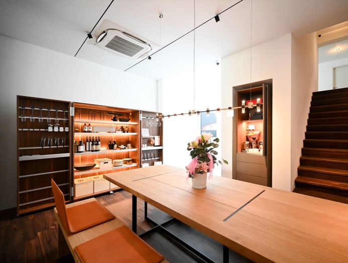 The new concept showroom features interactive displays and immersive kitchen vignettes with each zone highlighting how Bulthaup systems function in real homes. There is also a cafe – a first in Asia – where the public can enjoy Santino Coffee made with the brand’s Victoria Arduino espresso system while sitting at Bulthaup’s Solitaire table and benches, or at the B2 kitchen workbench.