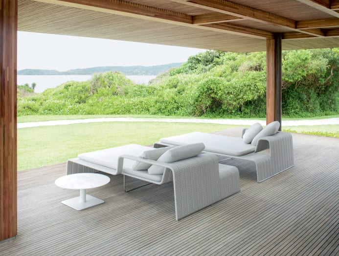 It is the early noughties and Italian designer Paola Lenti is fascinated with the idea of creating an innovative and weather-resistant material, in particular a soft round yarn similar to sailing ropes that can resist water and ultraviolet rays. Her research led her to polypropylene, which is lightweight and waterproof but was not thought for making outdoor furniture at that time.