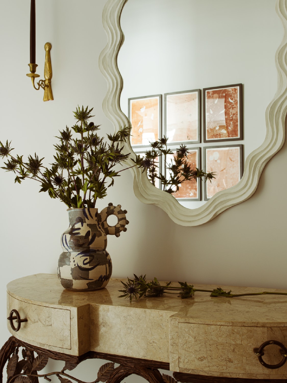 Your studio is known for its elegant and art-filled interiors. Can you share specific ways you applied this here?