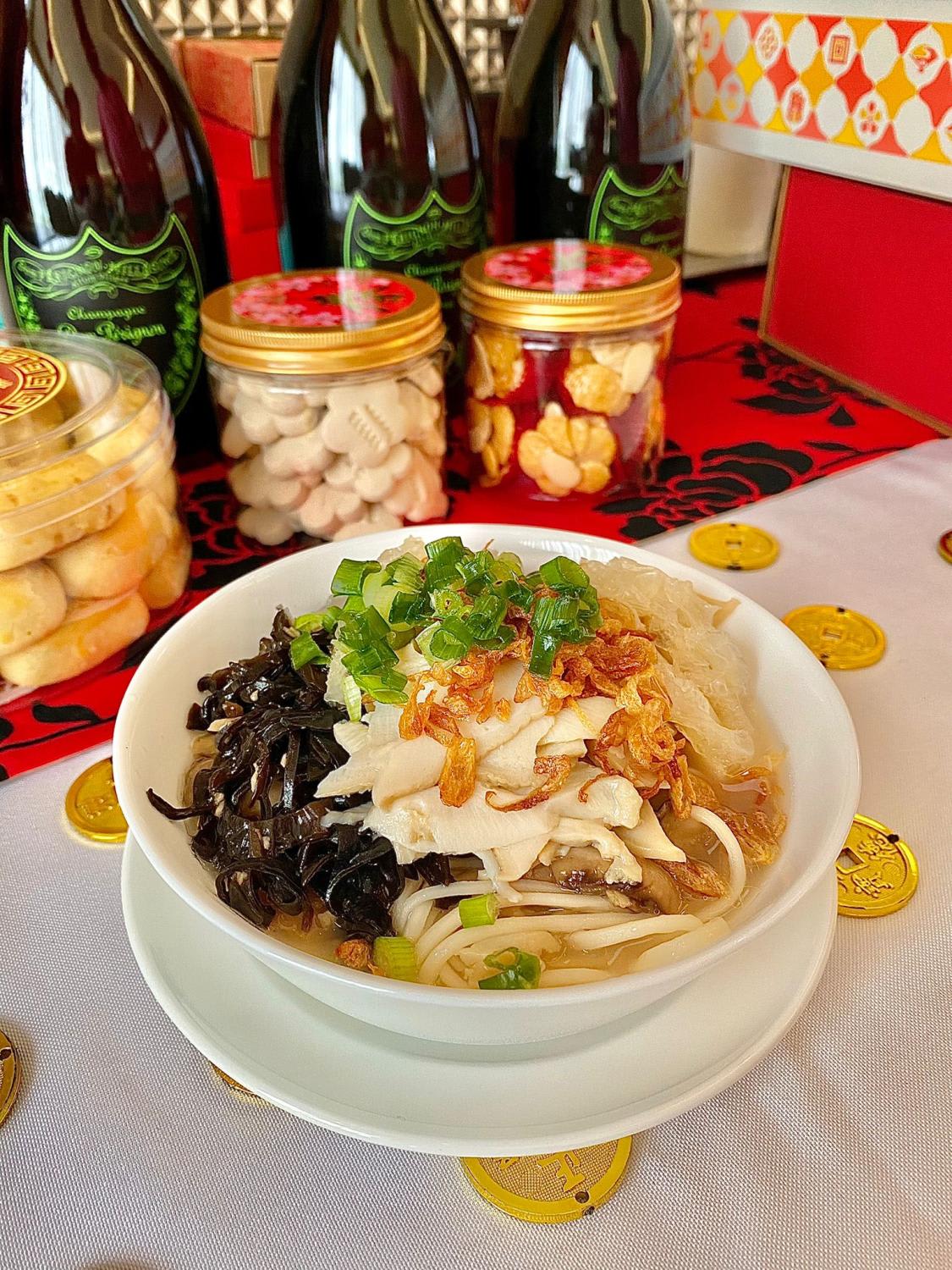 My favourite CNY dish is longevity noodles. On the first day of CNY, I will cook it for my family’s first meal. It symbolises good health and long-lasting good fortune. While eating, my family will wish each other great happiness and a long life. This makes our first meal very joyful and it kickstarts a happy year ahead.