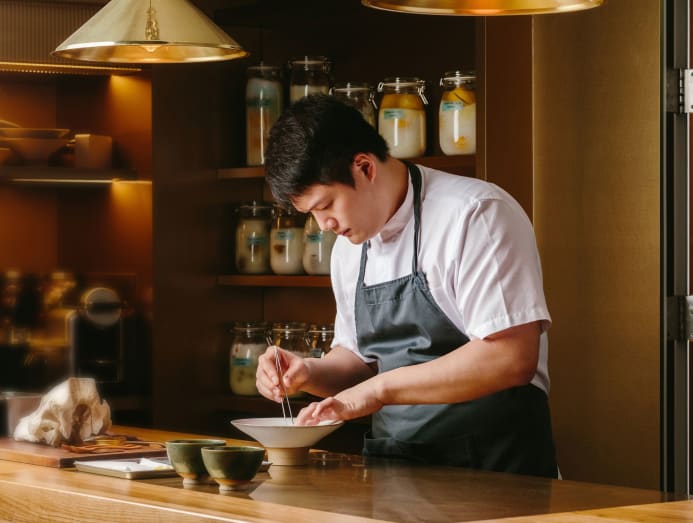 From a food perspective at Whey, we're introducing a Christmas panettone flavoured with black nut, as well as candlenut cookies with Singapore flavourings. Then on the menu we'll have duck with some bluefoot mushrooms and sauce made with rojak, as well as a puree of roasted apples and pandan.