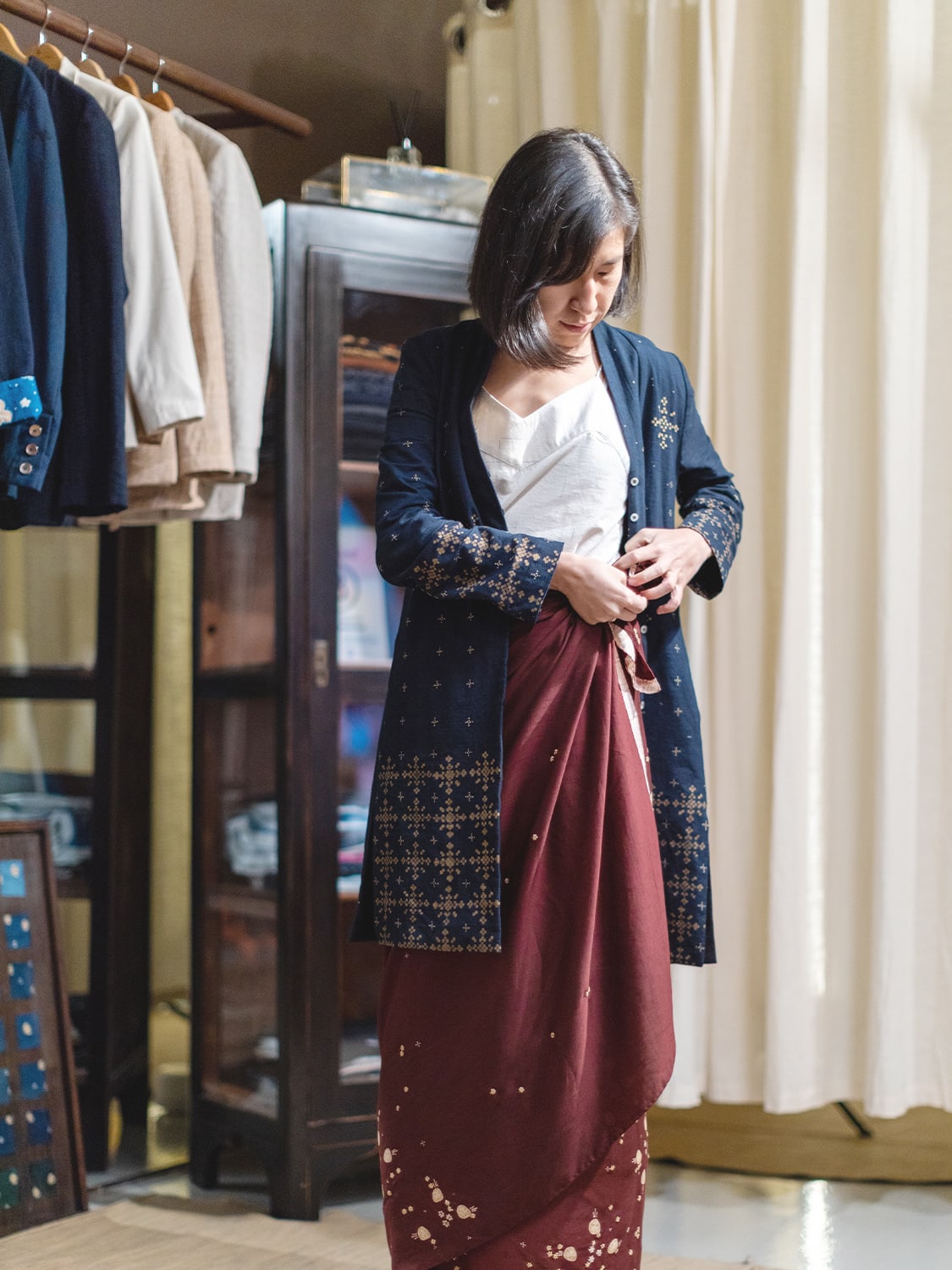 For the average consumer, a piece of SukkhaCitta clothing doesn’t come cheap. A structured top, for example, can cost around S$170, while a kebaya vest can cost almost S$300. An evening dress can cost over S$470.