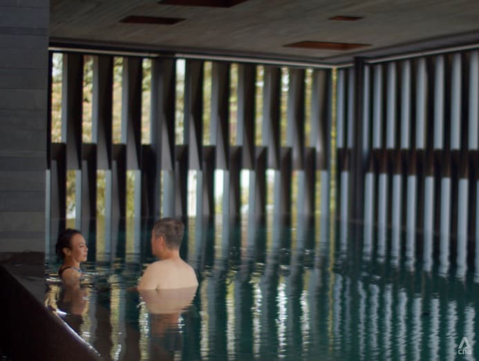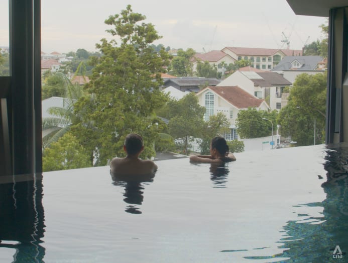 The homeowners, who moved in in 2021, love the house’s open plan where they have expansive views of the surrounding greenery. The ground-floor living and dining areas for entertaining guests are linked by passageways with water features, while the second floor consists of guest bedrooms and a semi-indoor swimming pool. A sliding trellis, when drawn shut, gives the couple privacy as they relax in the pool. When drawn open, it offers panoramic views of the garden as well as the rooftops in the neighbourhood.