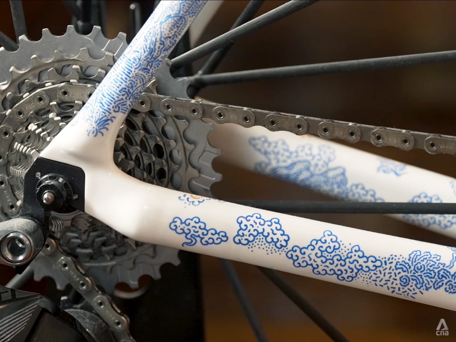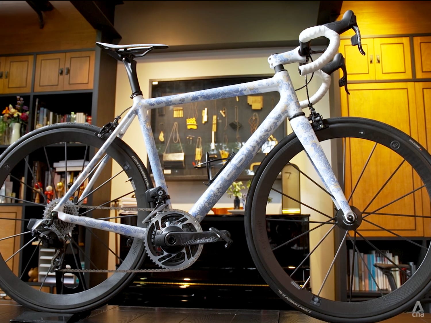 “This bicycle looks like porcelain, because I wanted the bicycle to look like porcelain, not carbon. I only wanted three things on the bicycle, which are the names of my wife and children, anywhere on the frame,” he said.