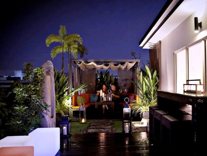 One of the couple’s favourite places to enjoy some adult time is the roof terrace, a resort-inspired romantic retreat decked with tropical plants, a cosy cabana and glistening lap pool.