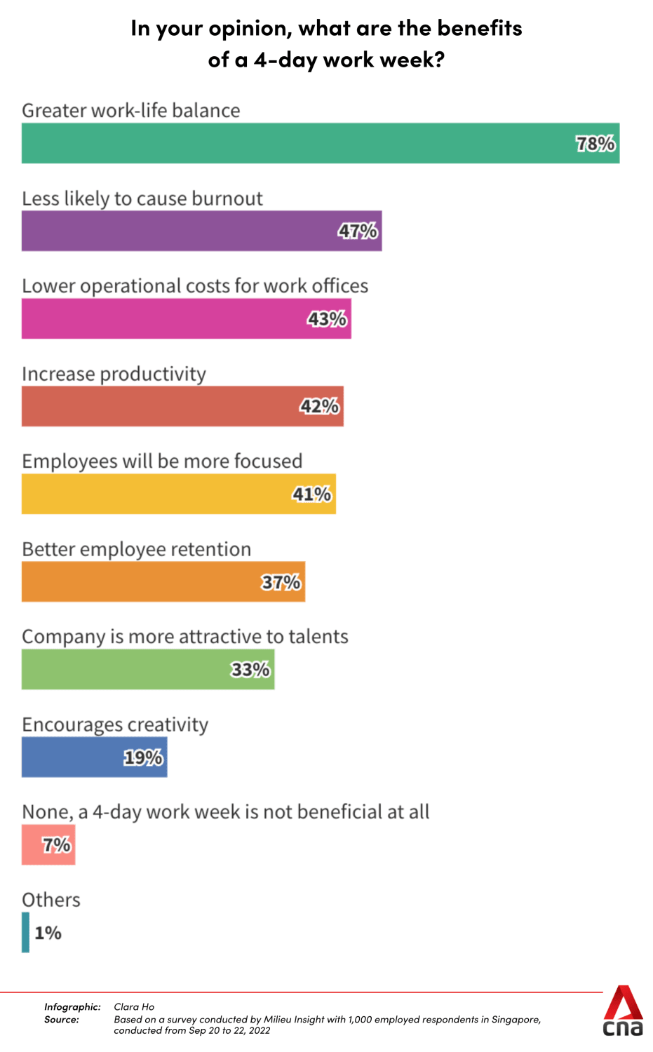 Respondents also thought it would result in “lower operational costs for work offices” (43 per cent) and would increase productivity (42 per cent).
