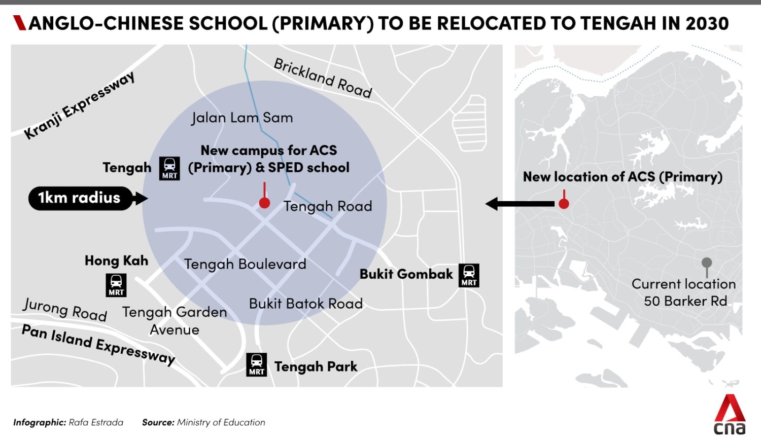 2030: ACS (Primary) to relocate to Tengah and accept both male and female students. Current students at Barker Road site will continue going to school there, and the school at Barker Road will still accept Primary 1 students who are male siblings of current students