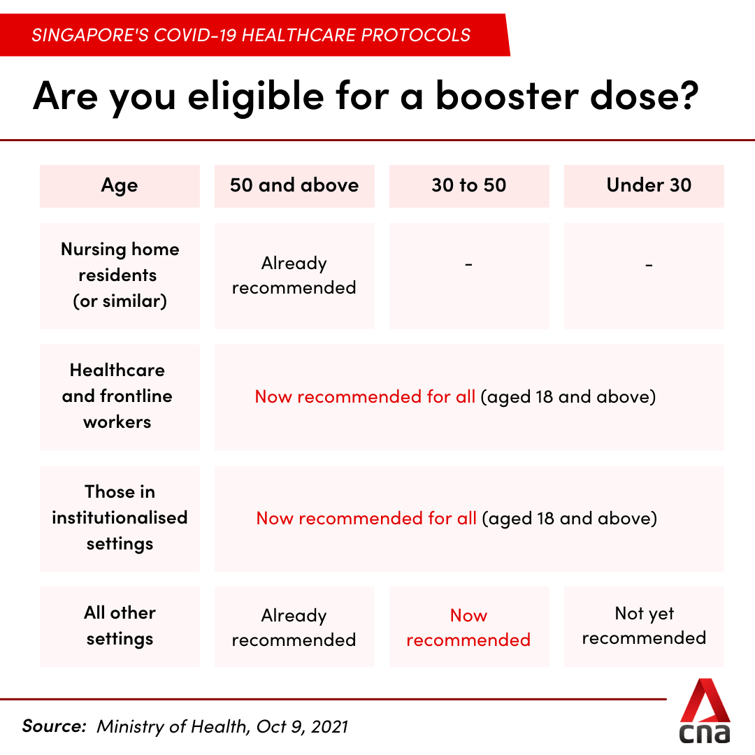 In a press release on Saturday (Oct 9), MOH said it had accepted recommendations from the Expert Committee on COVID-19 Vaccination for these booster shots.