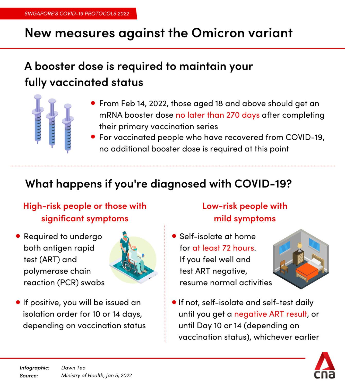 "So to maintain your full vaccination status, you will need to take a booster vaccine dose before the deadline of Feb 14," Mr Ong added.