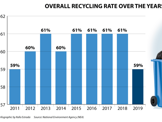 Over the past decade, Singapore’s overall recycling rate has hovered around 60 per cent.
