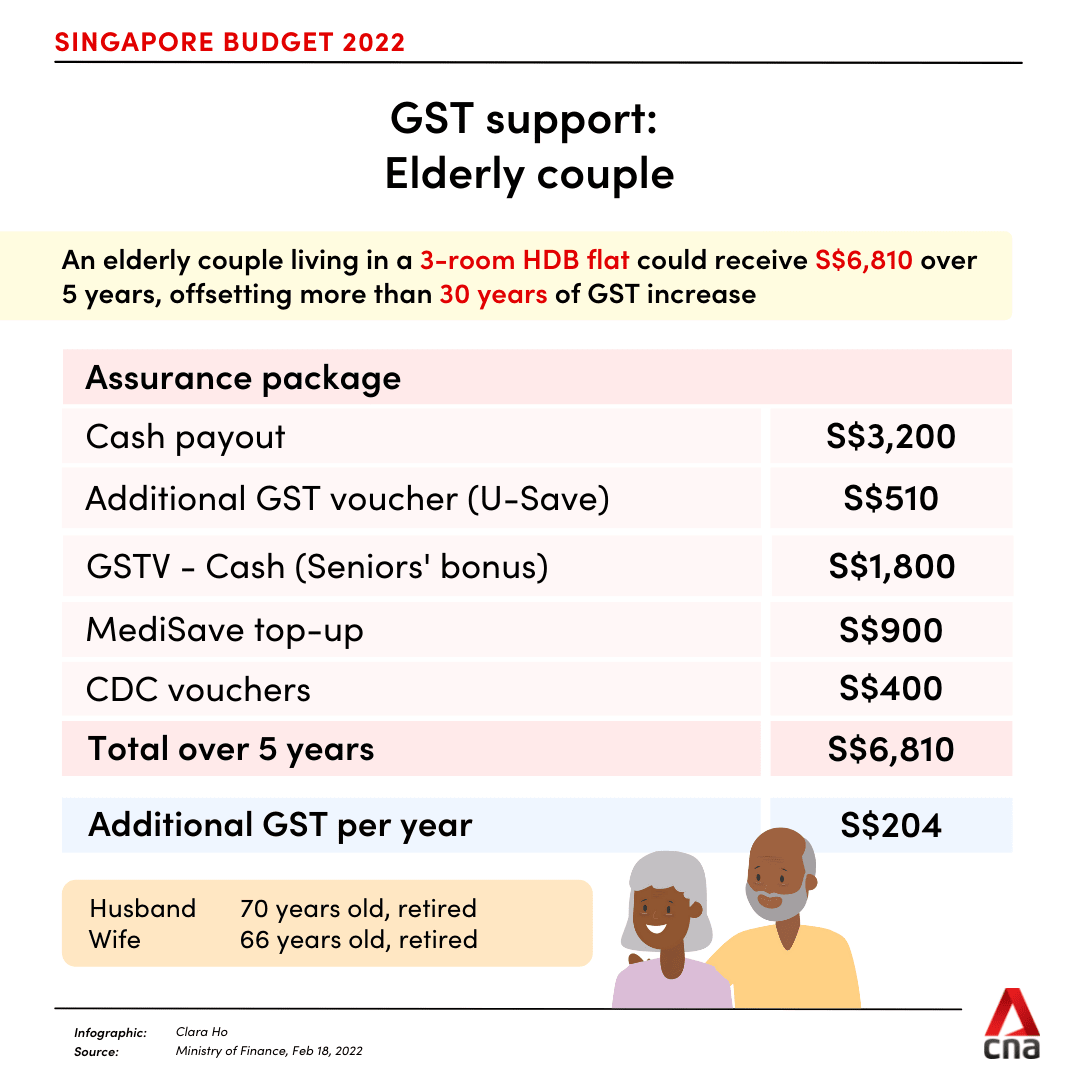 The enhanced assurance package aims to offset at least 5 years of additional GST expenses for the majority of Singapore households. (Graphic: Rafa Estrada)