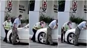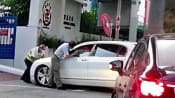 In the video widely circulated online, a white car was stopped from entering the primary school. The car then inched forward several times, pushing against the security officer standing in front of it.